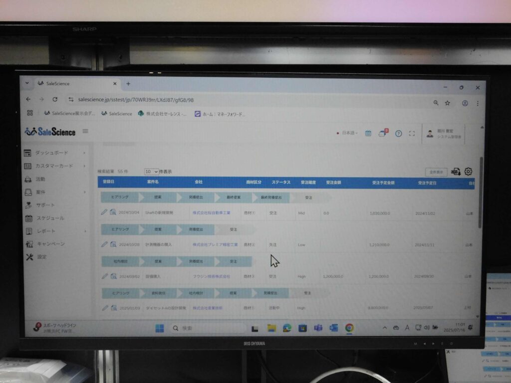 SaleScienceはサブスク提供で初期費用(構築費・活用セミナー費含む)は30万円、月額(10ライセンス付与)で6万8千円。7月の鍛圧機械の展示会MF-TOKYOにも展示し、営業に課題を持つ来場者へ訴求。山本社長は「金型業界は長年、新規開拓が課題。近年は自動車産業の低迷で苦しい状況にあり、営業をサポートするシステムとして業界に貢献したい」と述べた。