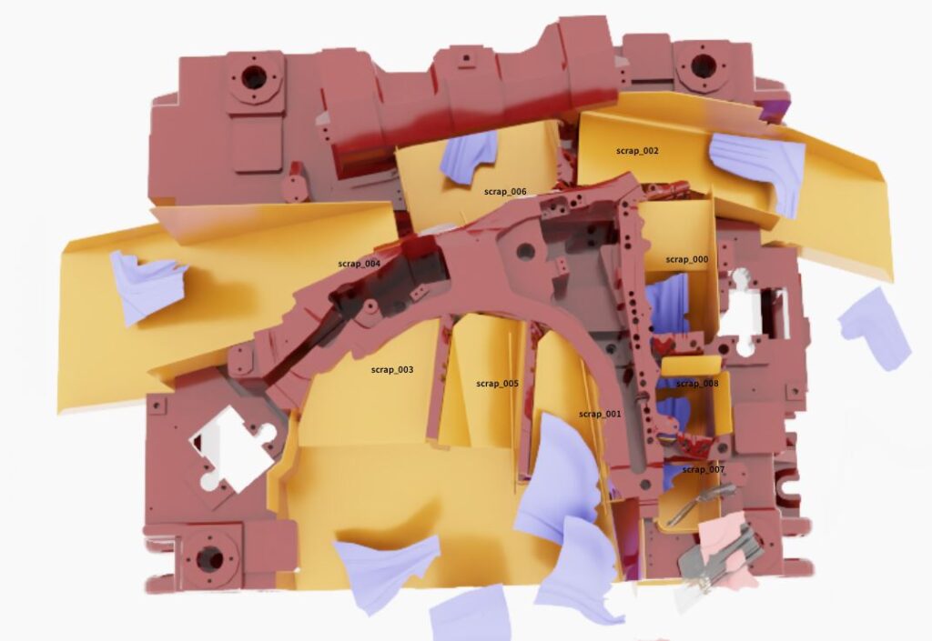 SUBARUはシミュレーションを活用し、プレスラインのスクラップ落下不良を削減するための仕組みを考案した。「スクラップの落下不良は金型の破損などを引き起こし、プレスラインの停止要因となる。現場での対処療法で都度乗り切っていたが、シミュレーション上で落下不良を再現し、改善することが望まれていた」(車体生産技術部 車体企画課 柴田康徳氏)。