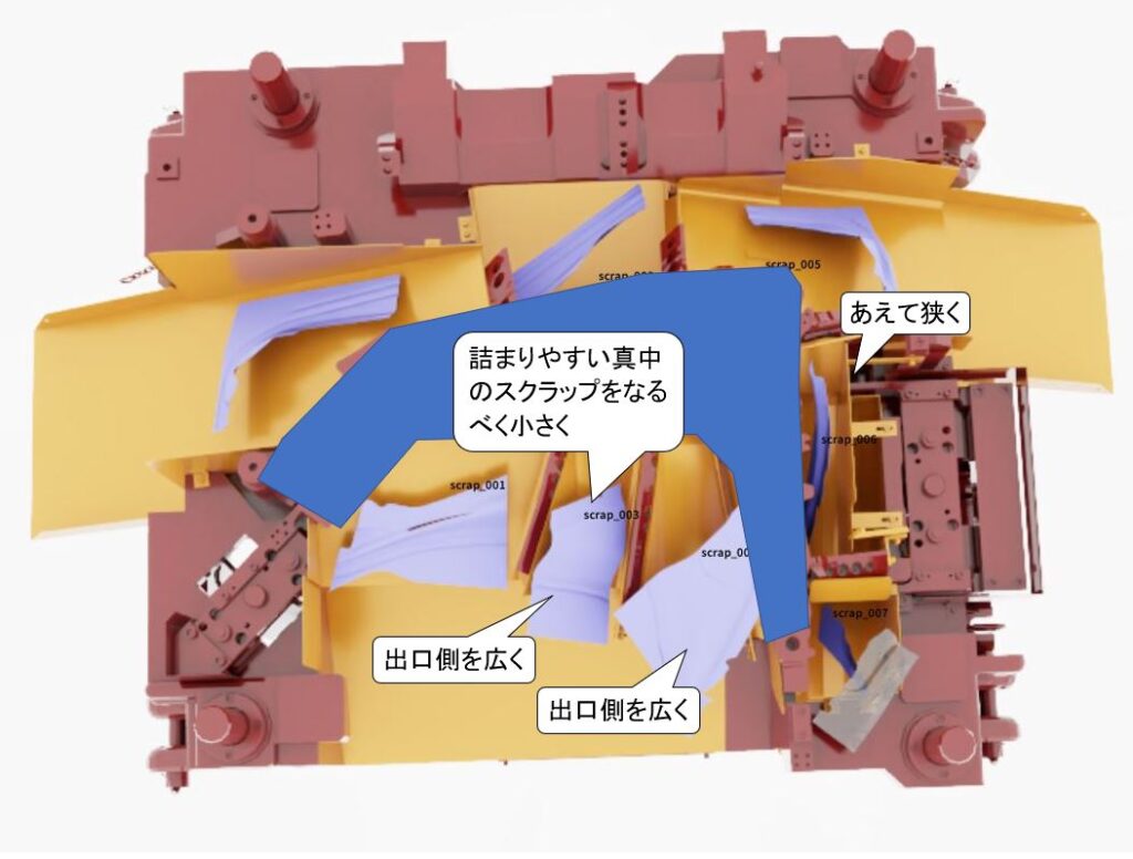 スクラップ落下率は90.7%から97.1%に向上、金型設計も変革