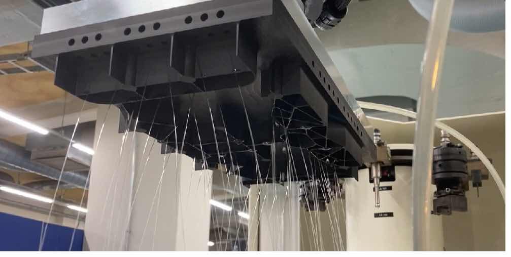 さらに噴流の圧力や加工条件をワークに合わせて最適化する技術を開発。大型型彫放電加工機「EDNC6」にこの技術を実装し、先の電極で加工した。