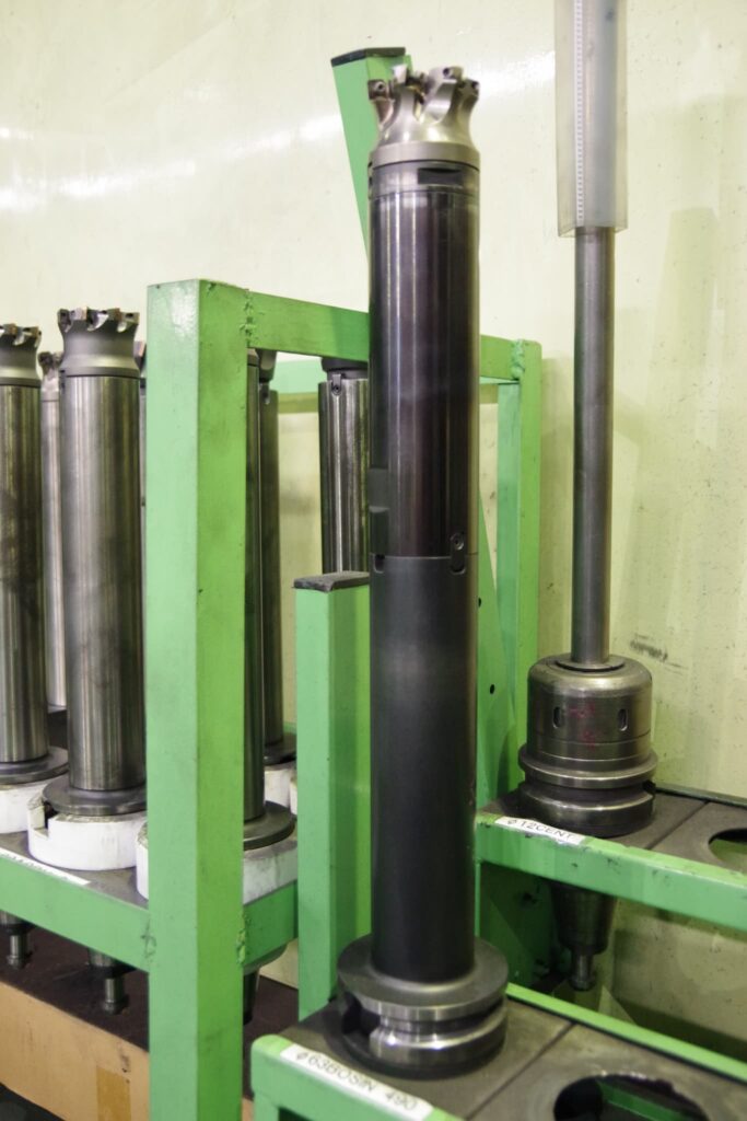 同社はφ63㎜の「AVアーバ」を導入。上型のタンカー取付座面の加工では、これまで毎分570㎜だった送り速度を約9倍の毎分5000㎜まで引き上げた。「びびりなしで加工でき、加工時間は約230分から約21・4分と10分の1以下まで短縮できた」(山根氏)。今後は段取り工程の効率化に取り組み、機械稼働率のさらなる向上を目指す考えだ。
