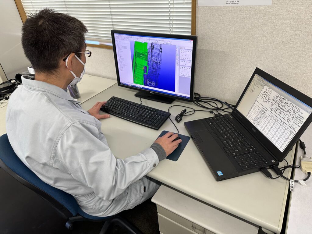 その一方で、先端技術の導入にも積極的だ。CAEや3D非接触測定器などを駆使し、熟練技能との融合を進める。特に機械加工は早くから自動化に着手。江津工場ではCAD/CAMを導入し、自動工具交換装置(ATC)を搭載した加工機にデータを流すことで自動加工が可能な仕組みを構築。従来のように人が機械に張り付いて加工する必要がなくなり、生産性が大幅に向上した。